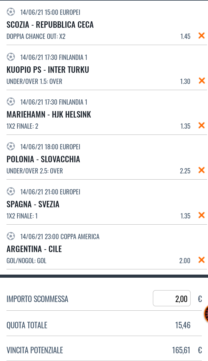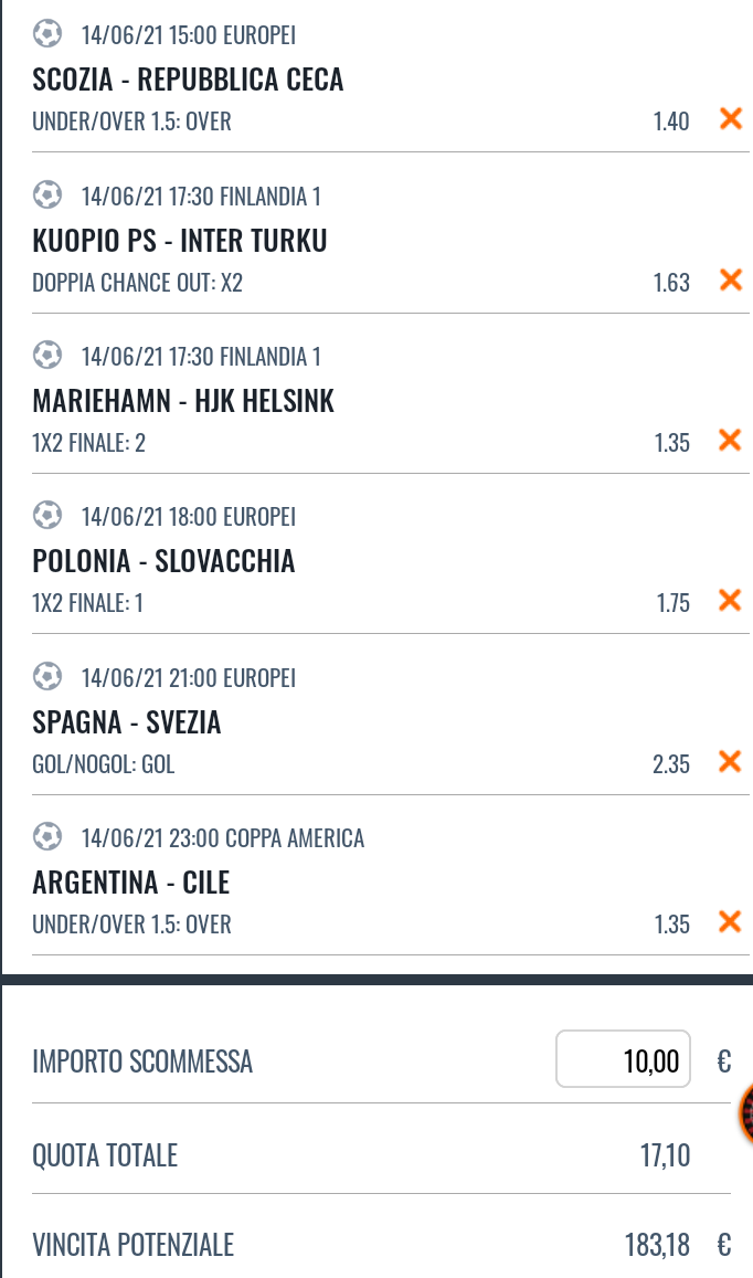 Di seguito i pronostici di Oggi, 14 Giugno 2021.