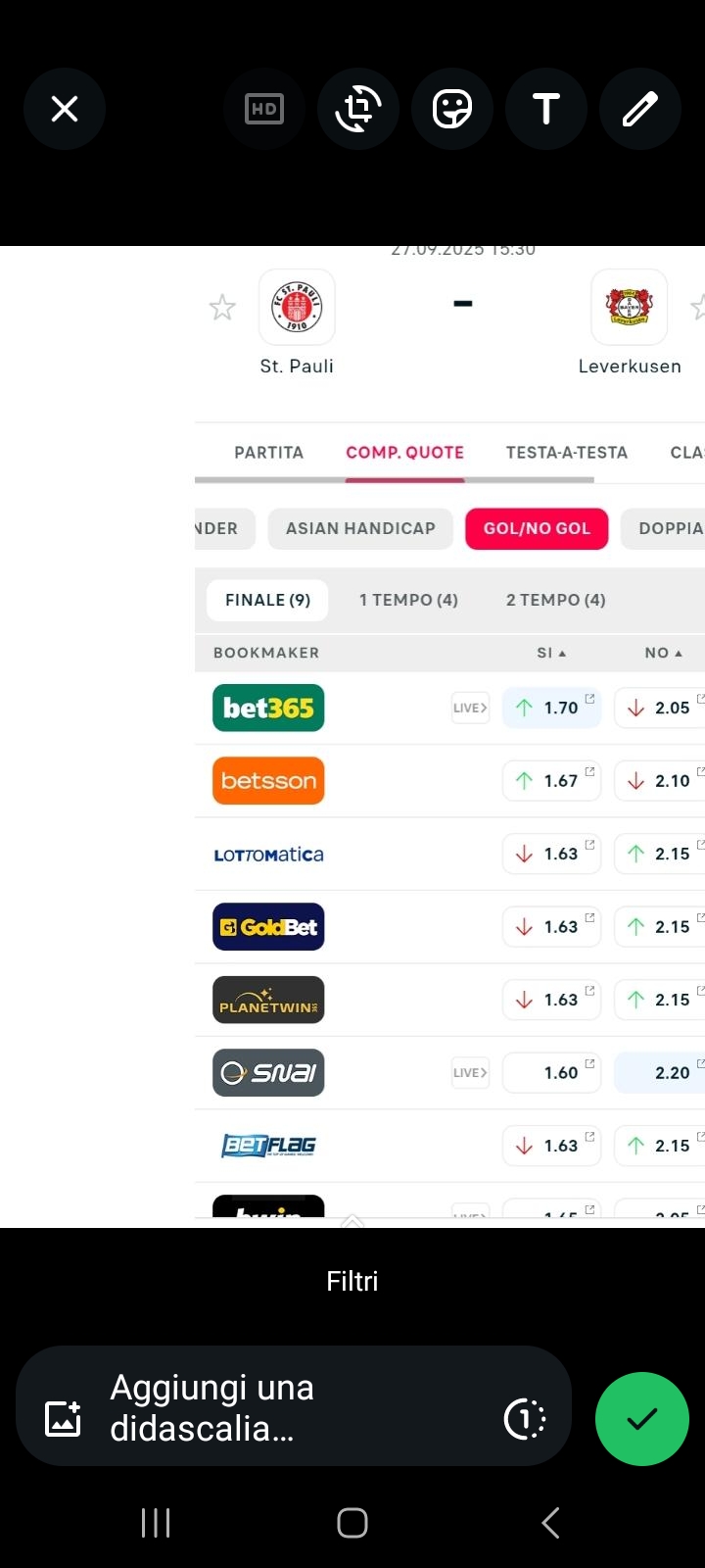 St pauli quota ben pagata esitò gol segnano entrambe