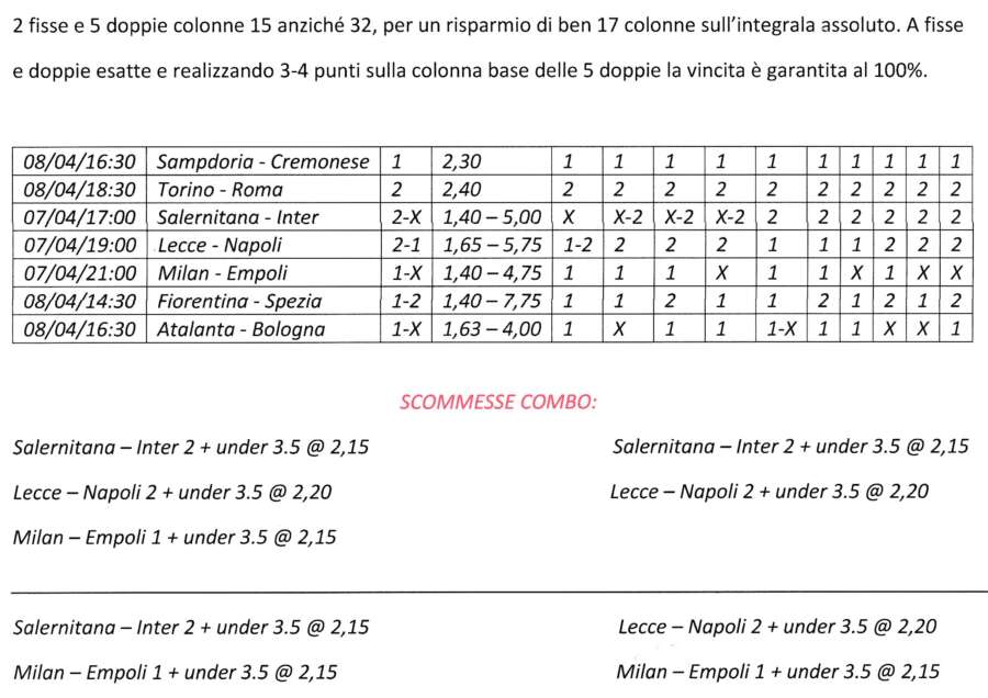 In questo numero troverete i pronostici serie A di Mimmo in programma il 7 e 8 aprile 2023, validi per la 29^ giornata di campionato di serie A – stagione 2022/2023 ed il sistema di Paolucci.