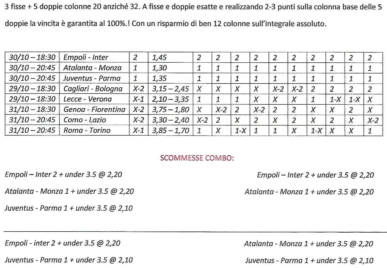 In questo numero troverete i pronostici serie A di Mimmo ed il sistema di Paolucci delle gare in programma il 29, 30 e 31 ottobre 2024, validi per la 10^ giornata di campionato di serie A – stagione 2024/2025. Il nostro articolo prevede pronostici studiati oggi, analisi e previsioni dei principali tipster online e bollette calcio già fatte e pronte per essere giocate.