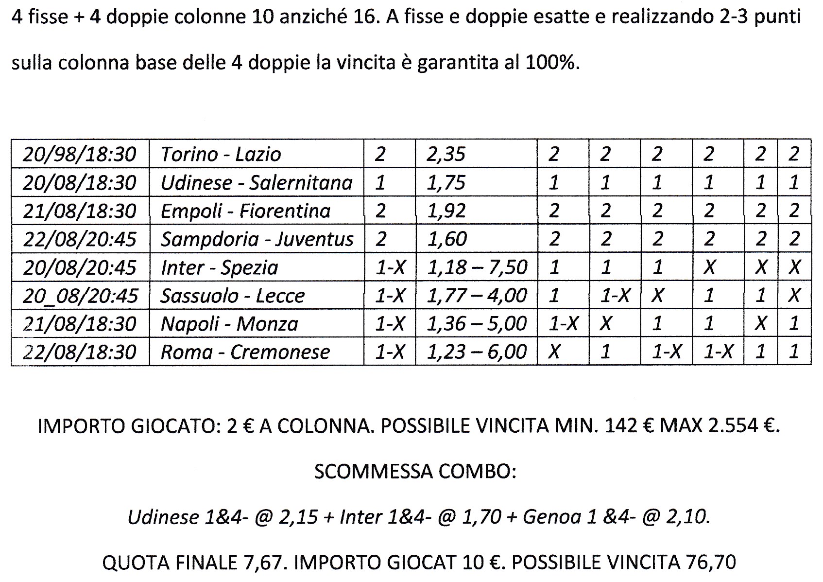 PRONOSTICI SERIE A MIMMO – Domenica 21 Agosto