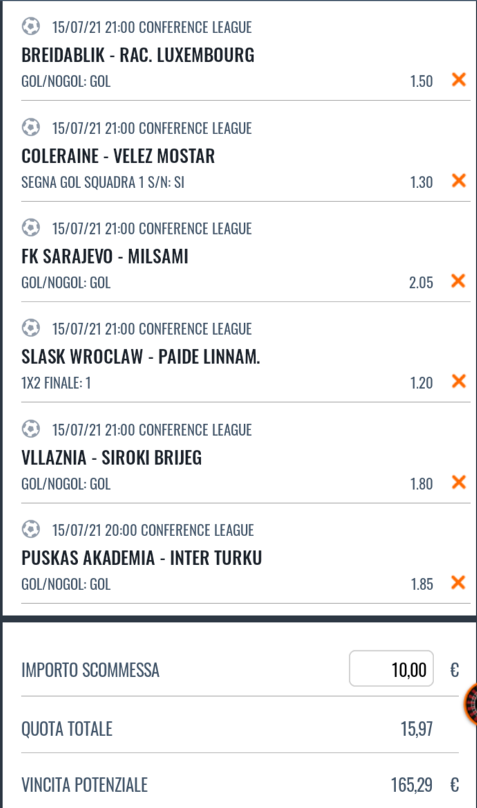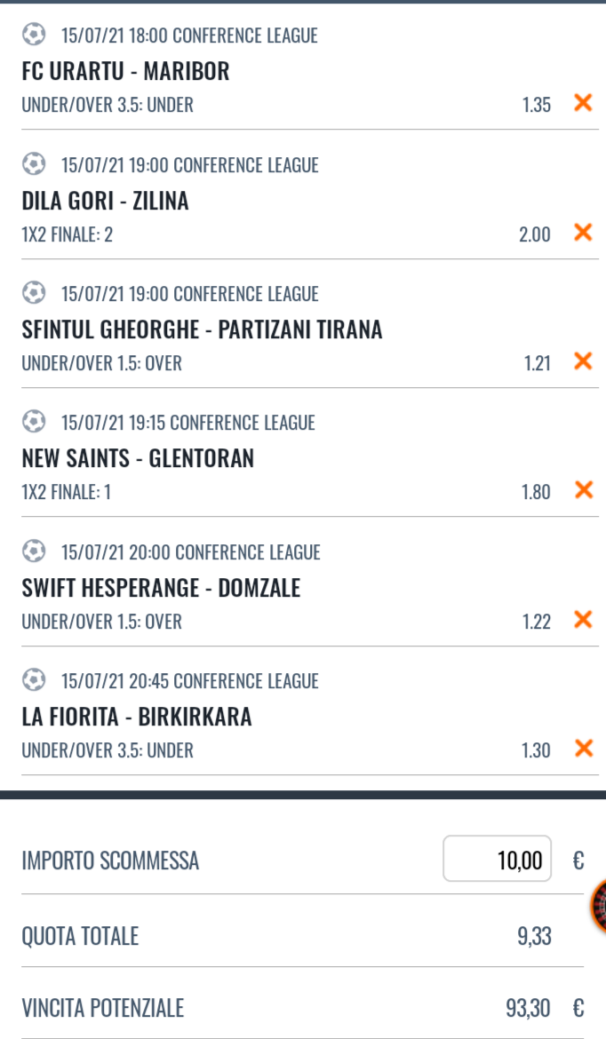 Di seguito i pronostici di Oggi, 15 Luglio 2021.