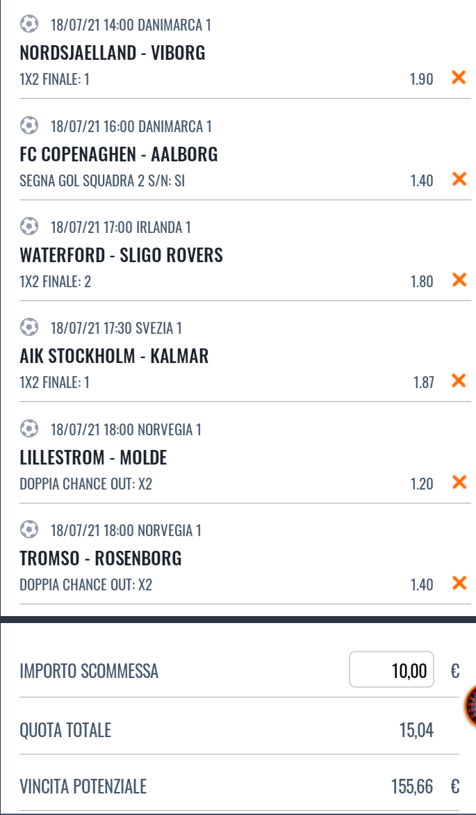 Di seguito i pronostici di Oggi, 18 Luglio 2021.