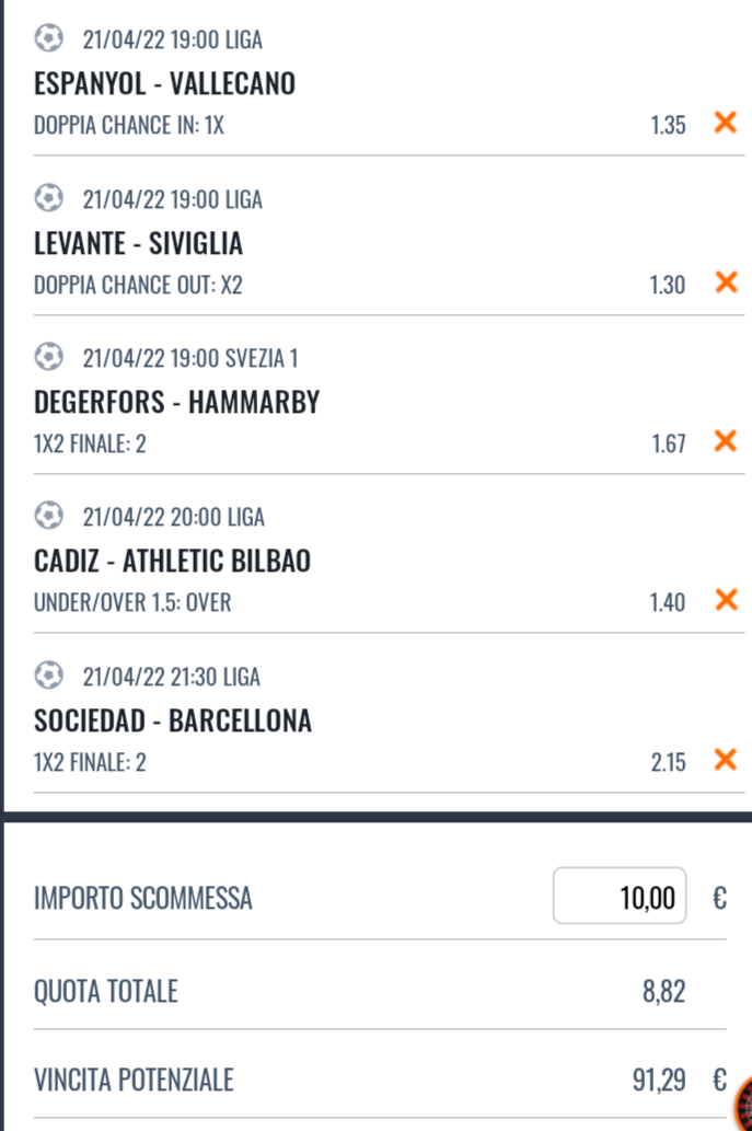 21/04 – 19:00 Levante – Siviglia 2 (2.20)