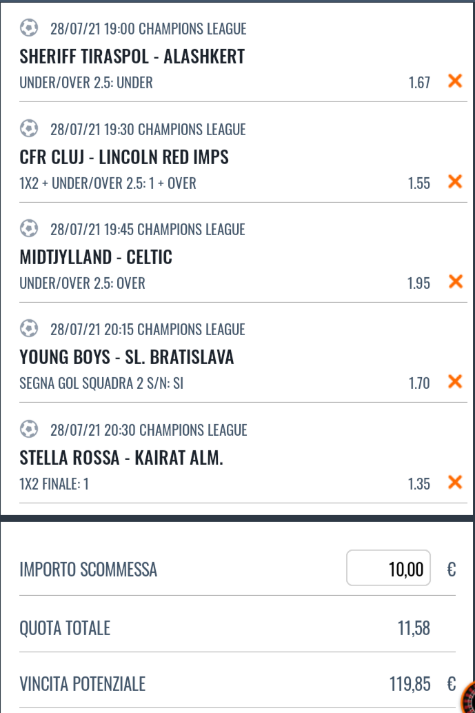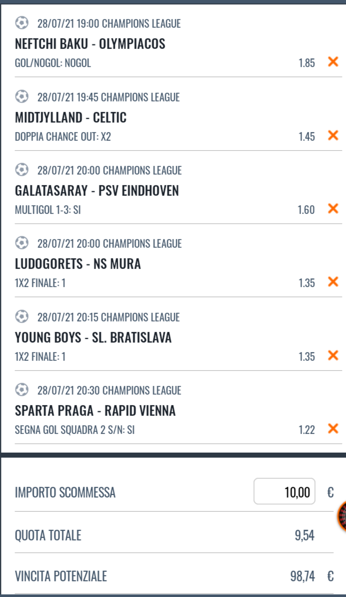 Pronostici Champions League del 28 Luglio 2021