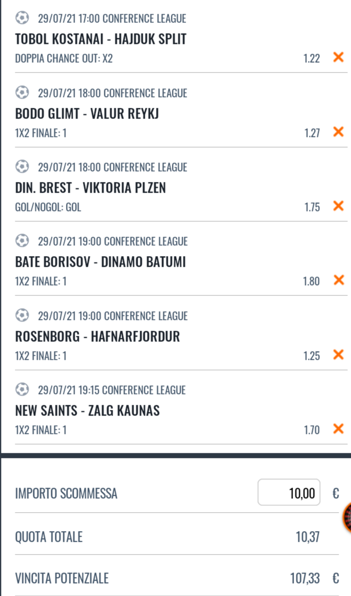 I pronostici di Oggi sui match di UEFA Conference League, in programma il 29 Luglio 2021.