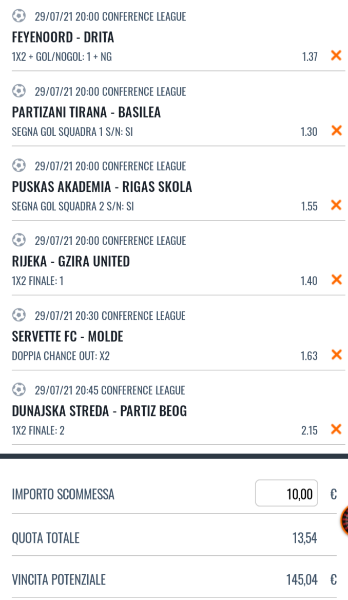 29/07 – 20:00 Feyenoord – Drita 1+NoGol (1.37)