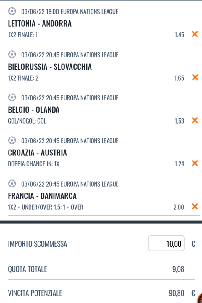 Di seguito i pronostici di oggi su UEFA Nations League 2022/23, del 3 Giugno 2022.