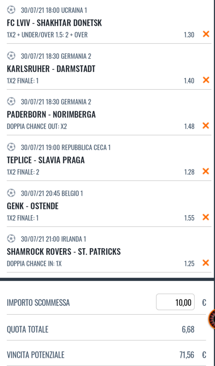 Di seguito i pronostici di Oggi, 30 Luglio 2021.