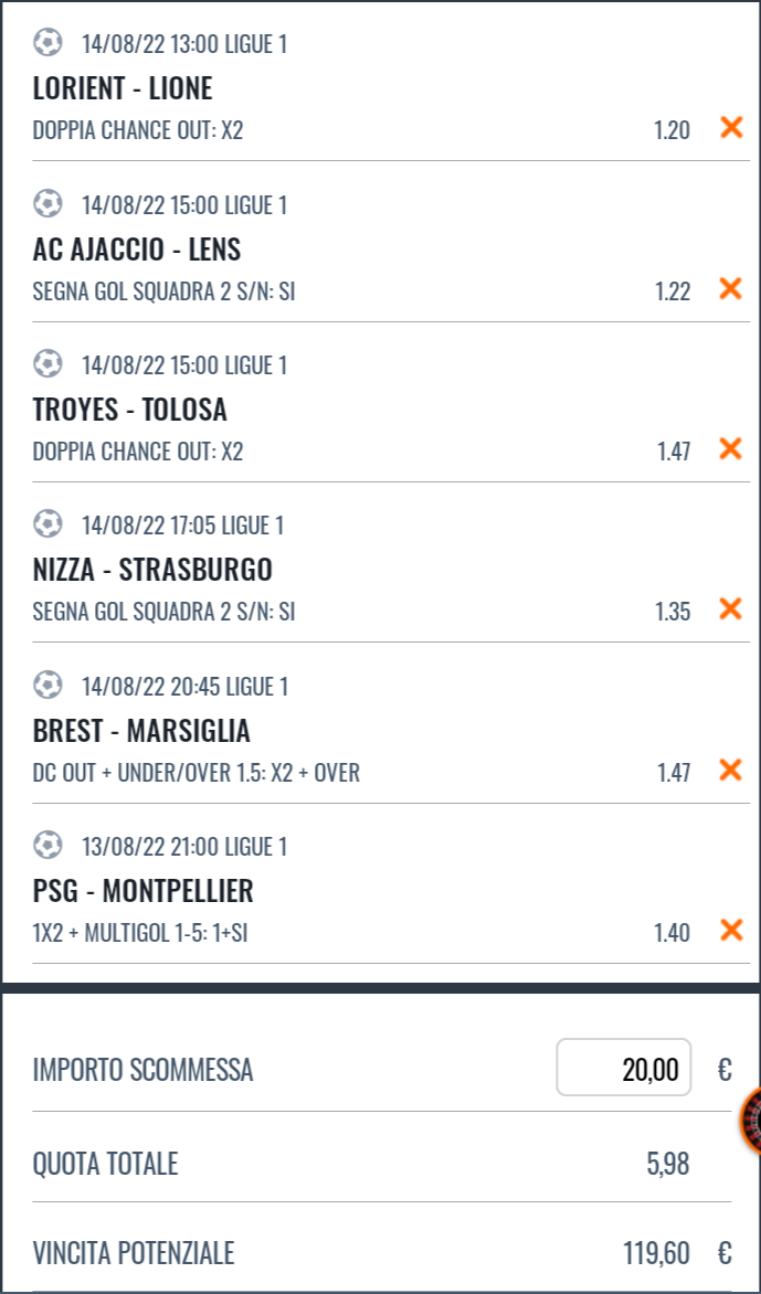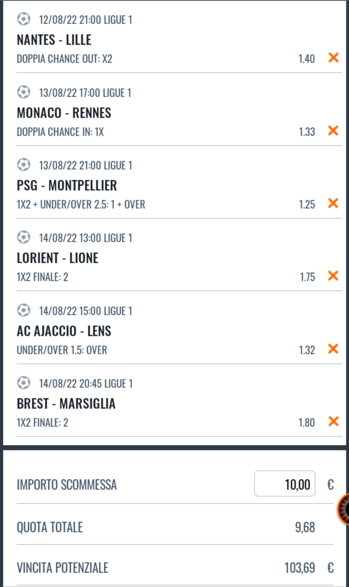 La prima giornata di Ligue 1 è finita in cassa, una vittoria che è valsa oltre 9 volte la posta -> Schedina Vincente.