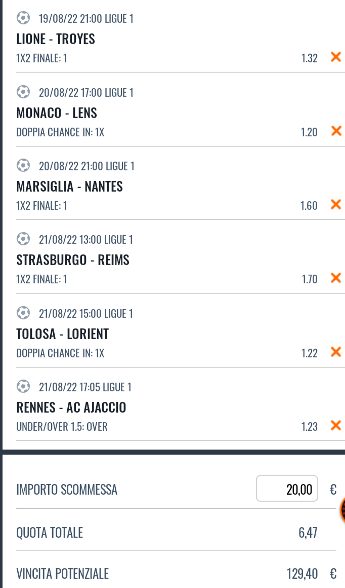 20/08 – 21:00 Marsiglia – Nantes 1 (1.60)